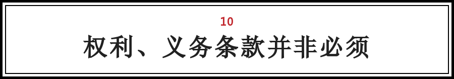 第一,权利、义务等不要出现在一个大标题下,而应分开表述,避免对某项条款是权利还是义务有不同认识,从而产生争议(实务中,笔者见到相当数量的合同,把权利义务条款混放在了一起)。