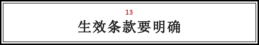 (2)合同中对某一条款的引用要准确,尤其是对多次调整后的合同。如“第五条……以第十三条约定为准”,而第13条并未约定应当约定的内容(可能是在第10条进行了约定,或是经多次改写原条文已经被删改)。